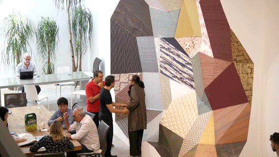 벽지 전문 회사 나루는 이곳으로 이전하면서 새로운 전략을 내세웠다. 그전에는 벤데돌을 통해 전국의 대리점을 확장했다면 이제는 전문 건축업자들과 디자이너, 각 분야의 전문인들을 상대로 제품의 우수성을 소개하는 것이다. 트렌드를 끌고 갈만한 제품을 통해 기선 제압을 하는 것으로 해석된다. 스마트한 시대를 이어 이제는 사물인터넷의 활용을 파악한 것도 큰 힘이었다. 핸드폰 하나로 생활을 해 나가는 시대에서 벽지 또한 변화해 가는 것이다.
