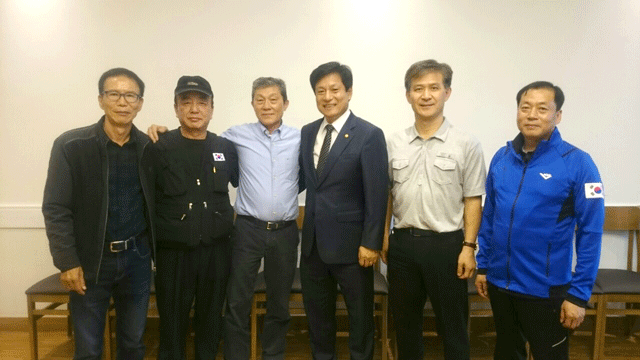 사진 왼편부터 고우석 고문, 한상진 교수, 한명재 회장, 박대근 회장, 김요준 회장, 김창한 감독