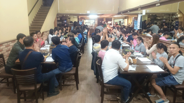 [브라질 탑뉴스] 시각장애인으로 구성된 한빛예술단(이하 한빛)이 브라질 투어에 나선 가운데 한인회를 통한 손시종(전 한국문화의 날 위원장)씨가 9월 27일(수 19:00) 봉헤찌로에 위치한 한인 식당에서 만찬을 마련했다. 그동안 여러 차례 투어 공연에 지친 단원들은 한국 뷔페 음식 앞에 편안한 모습을 보여주었다.