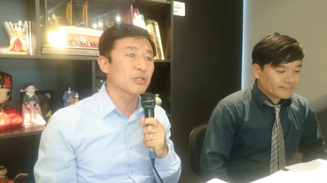 기호 1번 김요진, 기호 2번 방은영 입후보자들의 기자 간담회가 3일 금요일 13시 한류문화센터에서 열렸다. 김요진 후보자는 박선재씨를 참모로 , 방은영 후보자는 신형석씨를 참모로 대동하고 나왔다.