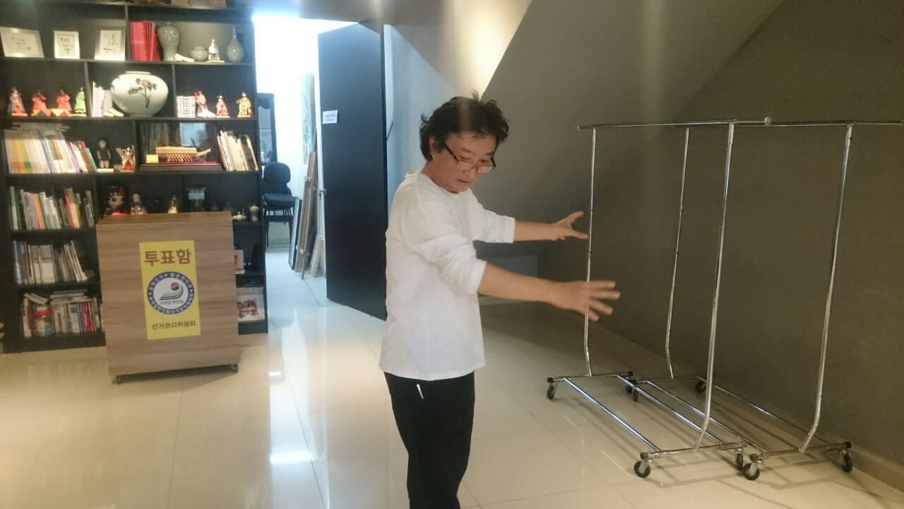 최요한 선관위 총무는 내일 치뤄지는 한류문화센터 장소 입구에 투표소 라는 새로운 베너를 걸었다. 또한 내일 투표장 내부의 구조에 대해서도 고심 가운데 가장 적합한 운영이 이뤄지도록 결정 지었다.