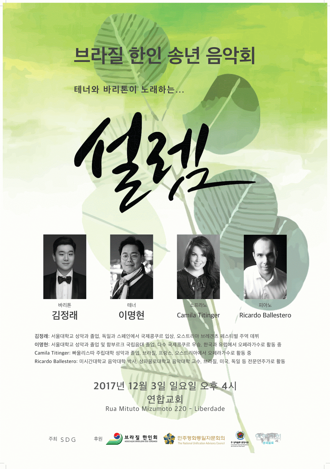 후원 및 협찬 : 브라질한인회, 민주평화통일자문회의, 주상파울로대한민국총영사관 / 연합교회, AMADEUS ESCOLA DE MUSICA