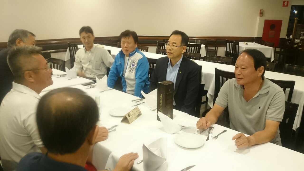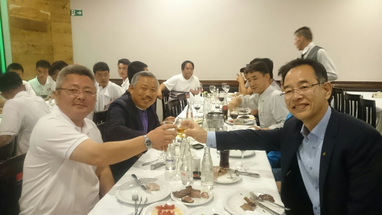 마지막 일정을 마친 ‘조선롱인축구선수단(단장 로경수)’을 맞아 한병돈 회장(재브라질대한체육회) 이 만찬을 마련했다. 브라질의 전통 음식인 슈하스코를 접한 선수단과 북한 임원 관계자들은 크게 기뻐했다.
