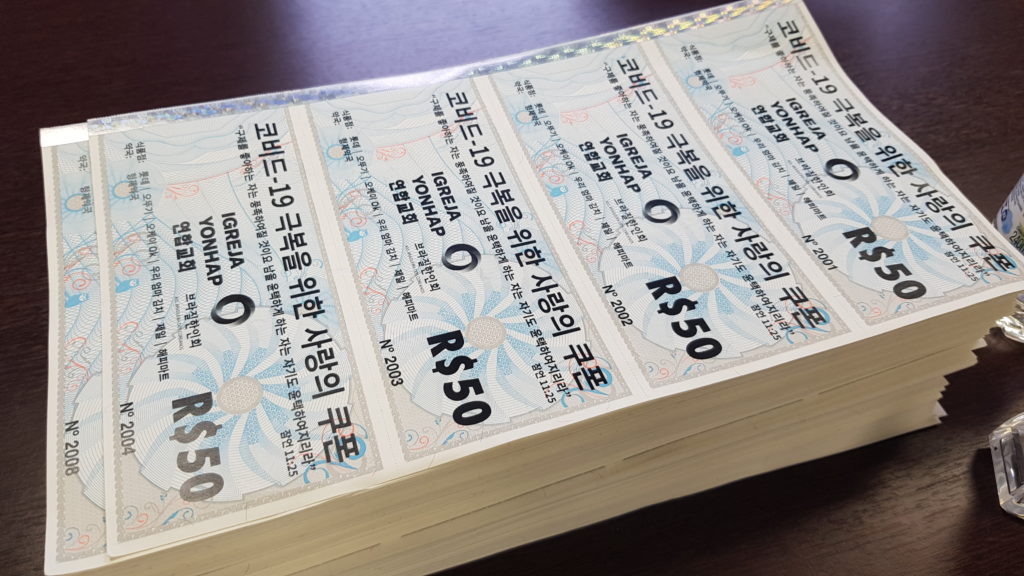 연합교회에서는 색갈이 다른 동일한 모양으로 제작했으며 1차 쿠폰 사용에 대한 회수와 구체적인 통계를 낸 가운데 한인회에 점차적 상황을 소개 했다고 전했다.