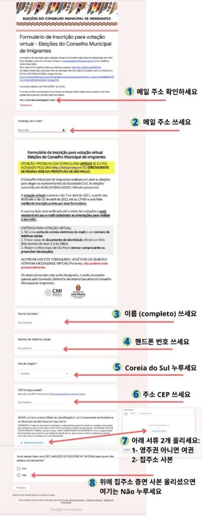 *** 아래 그림으로 설명서를 참조 바람. 신청 후  4월 7일까지 본 선거 투표를 위한 링크를 전달 받게 됨.