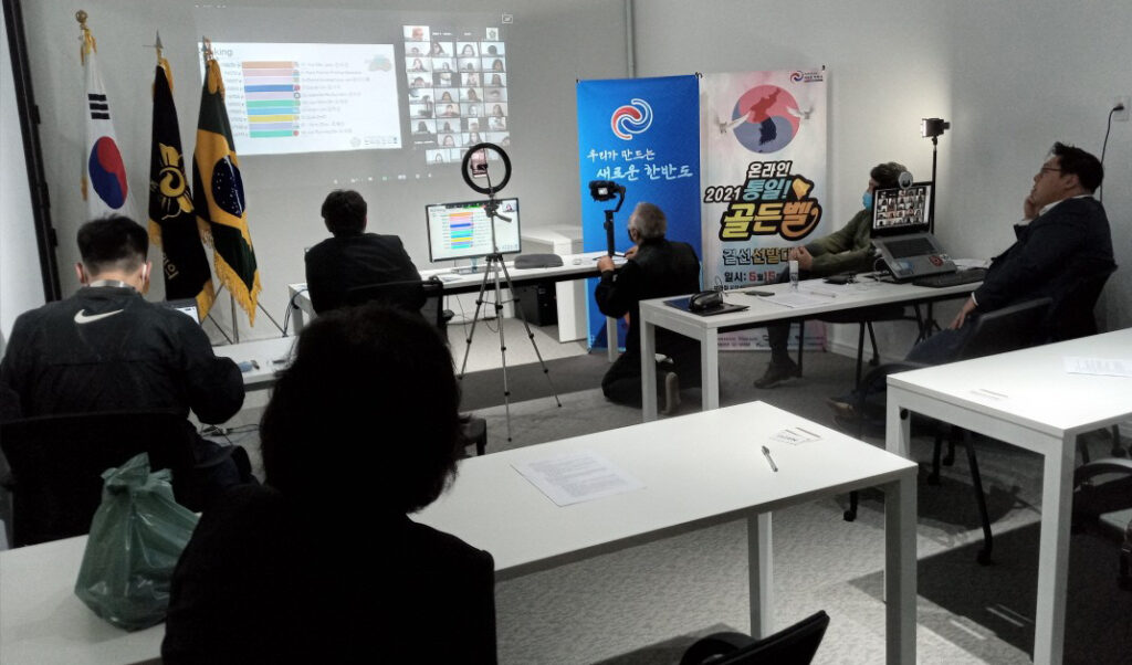 민주평통 브라질협의회(회장 김요준)에서는 15일(토) 오후 2시 온라인 화상 프로그램 ‘줌’과 퀴즈프로그램인 ‘Mentimenter’을 통해 2021 온라인 통일 골든벨 대회 (행사위원장 박종황)를 개최한 상황을 전했다.
